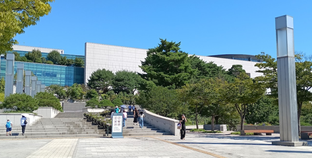 ⇑⇑国立中央博物館 正面 松の緑を多用した現代的な外観
