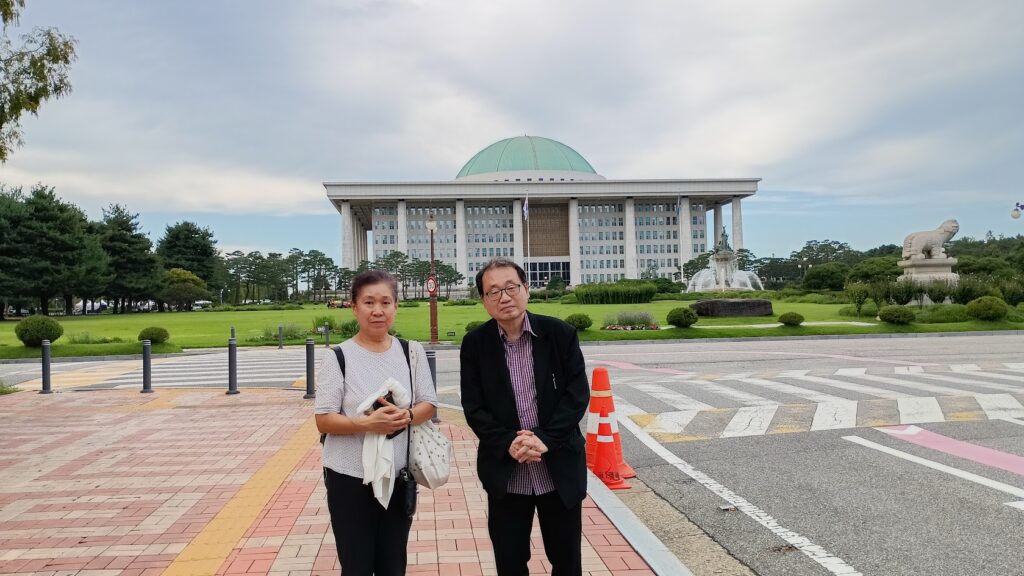 汝矣島の国会議事堂を背にして Y氏と妻と