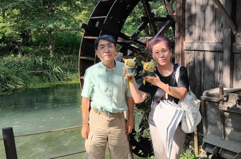 8月中旬 信州穂高の大王わさび農場で 妻の手には、ピカチューが・・・